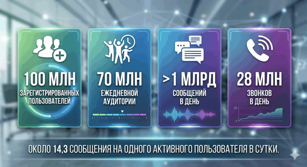 Если соотнести 70 млн ежедневной аудитории с более чем 1 млрд сообщений и 28 млн звонков в день, получится, что один активный пользователь в среднем генерирует около 14,3 сообщения и 0,4 звонка в сутки. Это признак не формальной установки приложения, а регулярного повседневного использования. Именно такая поведенческая плотность и создает для бизнеса условия, при которых внимание пользователя можно быстрее переводить в заявку, диалог, оплату или повторный контакт.
