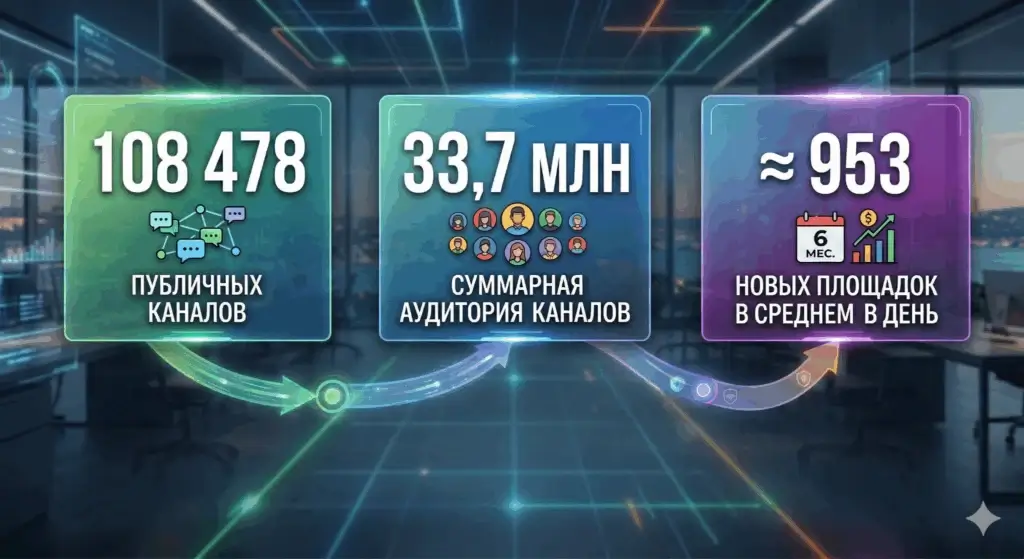 По состоянию на середину декабря 2025 года в мессенджере уже насчитывалось 108 478 публичных каналов, а суммарная аудитория каналов превысила 33,7 млн пользователей. Это означает, что фаза низкой конкуренции уже проходит. Для медиа и брендов выиграют не те, кто просто пришел раньше, а те, кто успел раньше выстроить регулярный контентный цикл, сценарий возврата и переход пользователя в сервисное действие.